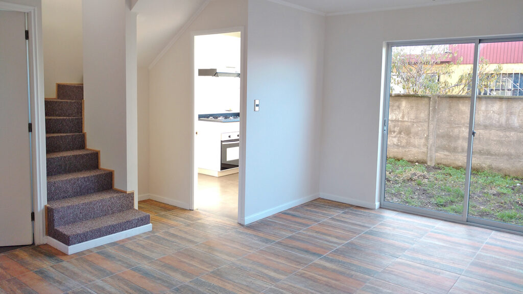 Las casas consideran ventanas de aluminio, piso cerámico imitación madera en primer piso en living comedor y acceso, alfombra en dormitorios, papel mural, cocina equipada y amoblada.